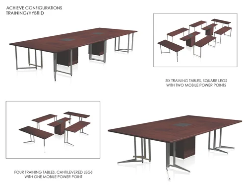 Jofco InForm is a mobile, reconfigurable training and conferencing table system. The tables are collapsible, nesting and integrated with wire and data management.