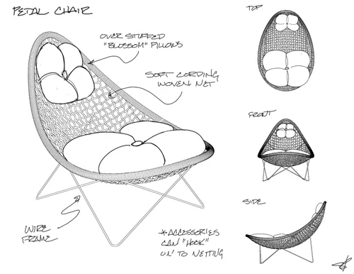 Developmental conceptual sketches illustrating a variety of seating concepts for the mass market. These concepts were designed for big box retailers with overseas manufacturing and sourcing.